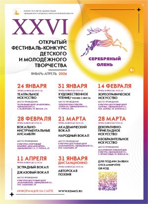 Дорогие друзья! Мы рады сообщить о старте приёма заявок для участия в XXVI Открытом Фестивале-конкурсе детского и молодёжного творчества «Серебряный олень»!
